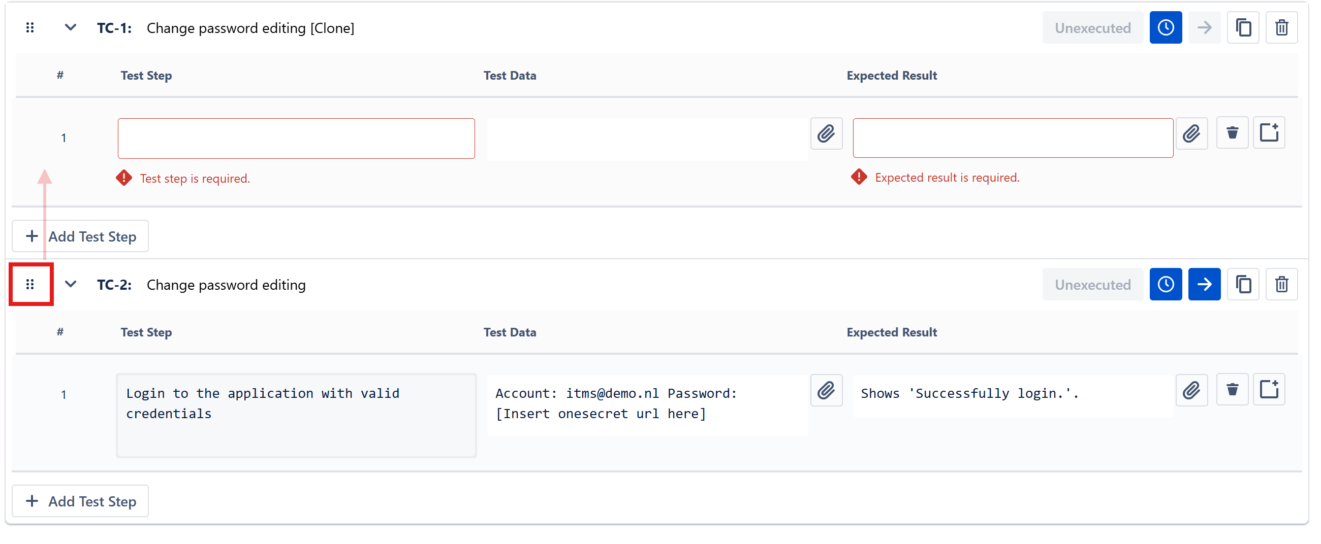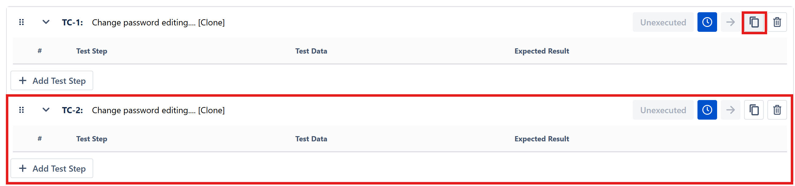 - Select the test case and choose Clone icon from the action menu